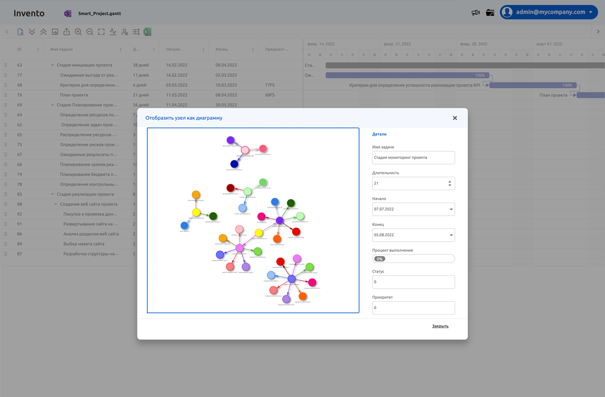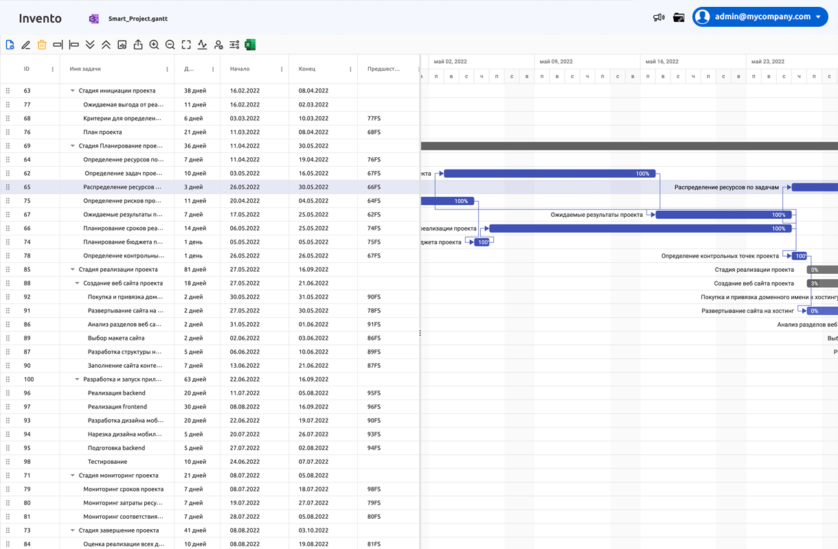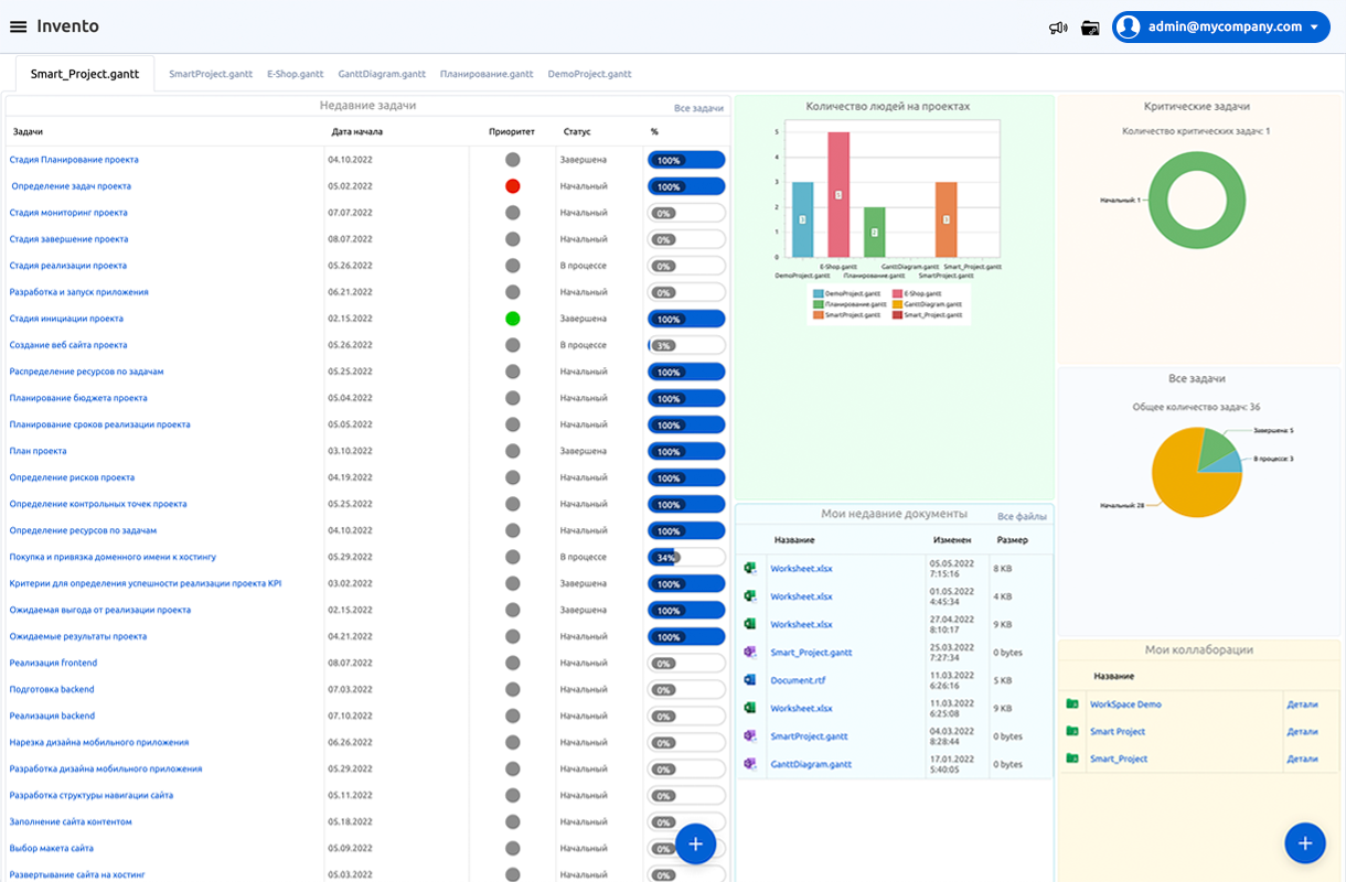 SmartProject позволяет объединить функционал листа электронной таблицы и функционал Gantt диаграммы используя комбинированную файловую систему и систему сообщений, доступную в различных проекциях удобных для пользователей приложения