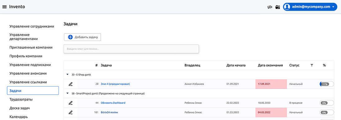 Система доступов внутри Gantt диаграммы или списка задач позволяет нескольким менеджерам основных задач проекта под своей главной задачей развивать вниз структуру подзадач, без риска случайных вмешательств в их зоны ответственности